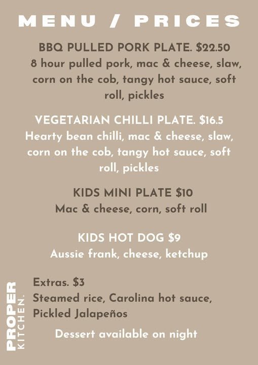 Friday evening kicks off with Happy Hour from 3:30pm, followed by Proper Kitchen’s menu (as pictured) from 5pm. And of course, Barefoot Bowls is on as always — ideal for families, friends, and anyone chasing a relaxed start to the weekend.